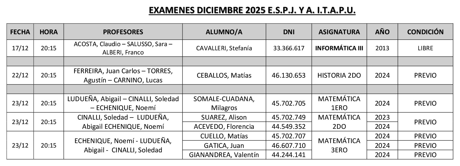 Exámenes Nivel Medio Diurno Diciembre 2025